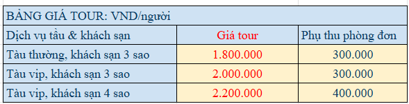 GIÁ TOUR BAO GỒM